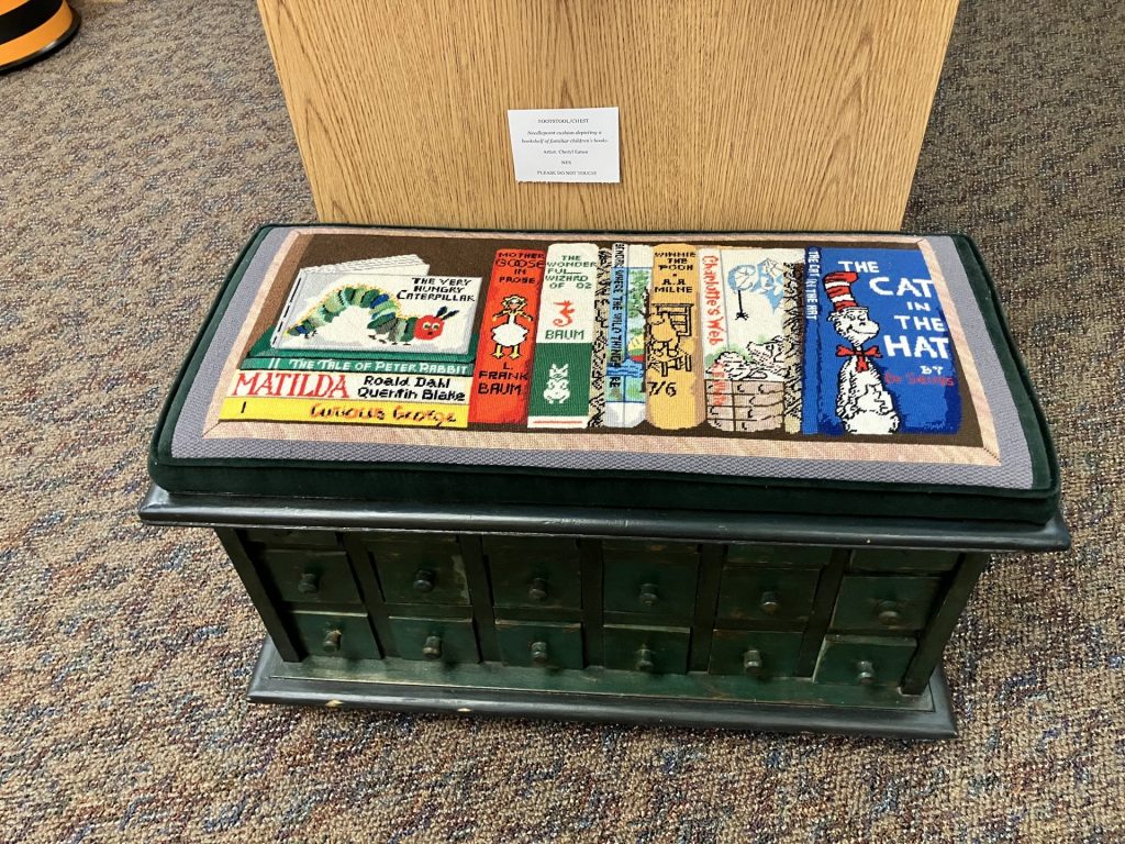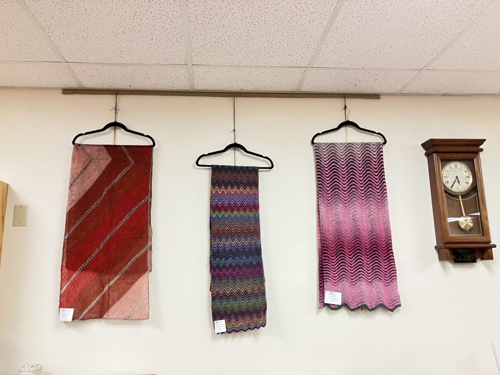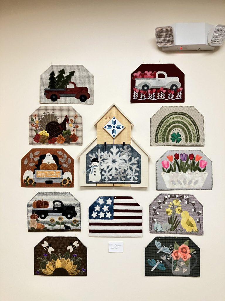 These local ladies have been meeting since the beginning of 2023 to work on projects together, socializing while they learn tips and tricks from one another. Come in and check out their gorgeous works of art of all shapes and sizes – there’s quite an array to look at!
